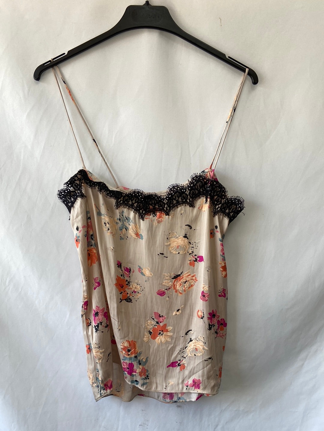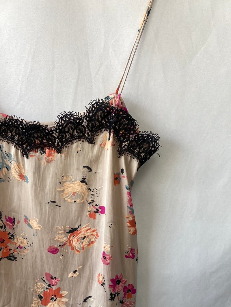 Top lencero con encaje y flores. Fluido y no elástico. Largo 70 cm