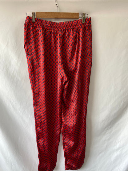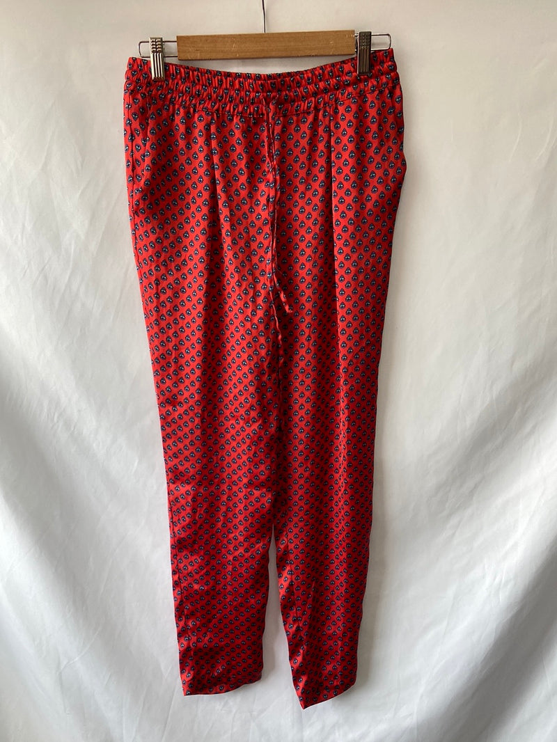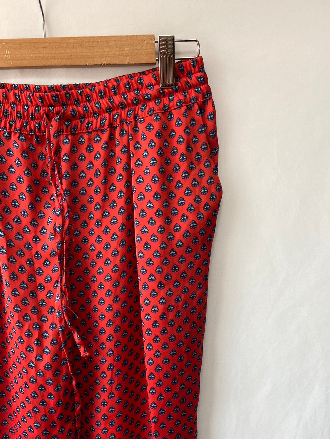 Pantalones fluidos rojos con estampado. Cintura elástica y finitos.