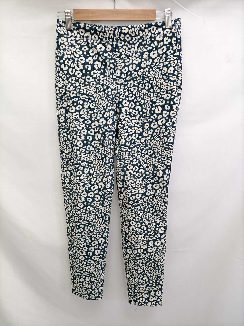 Zara. S. Pantalón verde animal print blanco de tejido arraigado. No elastico. De vestir. Cintura 36 cm largo 100 cm