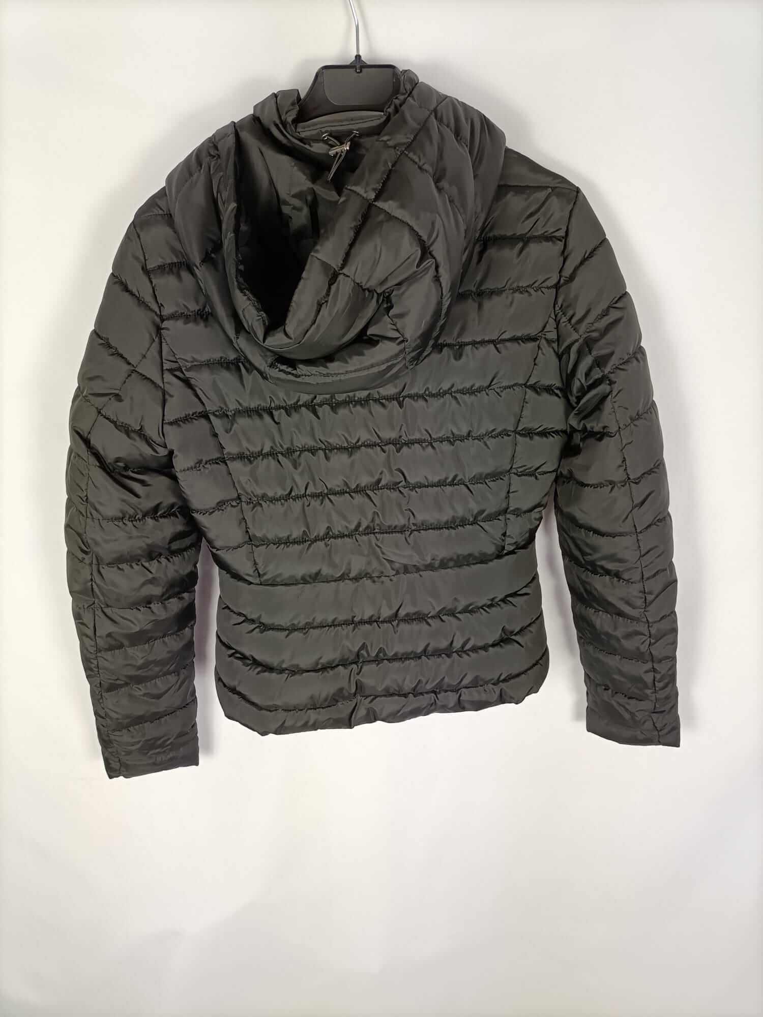 Zara. M. Plumas negro ligero. Se abrocha con cremallera y la capucha es extraible. No elástico. De sisa a sisa 47 cm largo 56 cm
