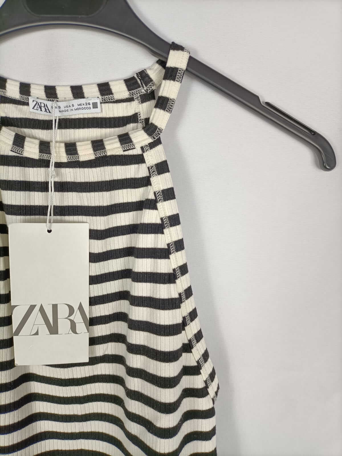 Zara.s. NUEVO CON ETIQUETA. Croptop de rayas beige y negro con escote halter. Elástico y ajustado. Largo 37 cm