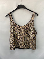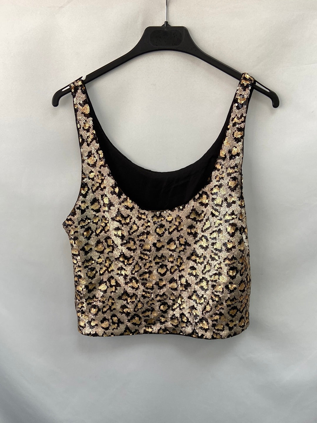 Top de lentejuelas con estampado animal print. Es cortito y no es elástico. De sisa a sisa 46 cm largo 49 cm