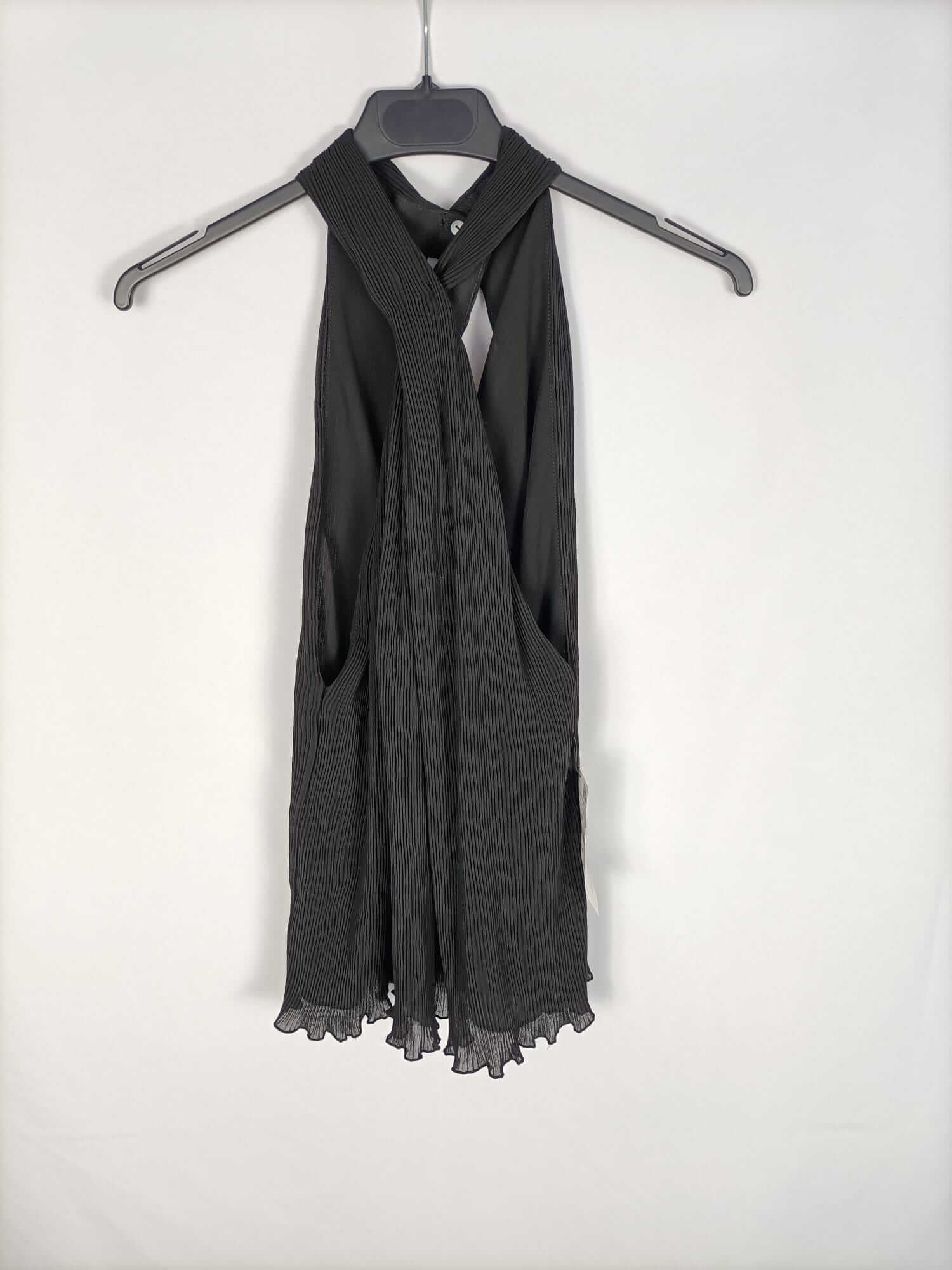 Zara. M. NUEVO CON ETIQUETA. Top negro plisado con escote cruzado y halter. Fluido y elastico. Largo 64 cm. 19,95 cm