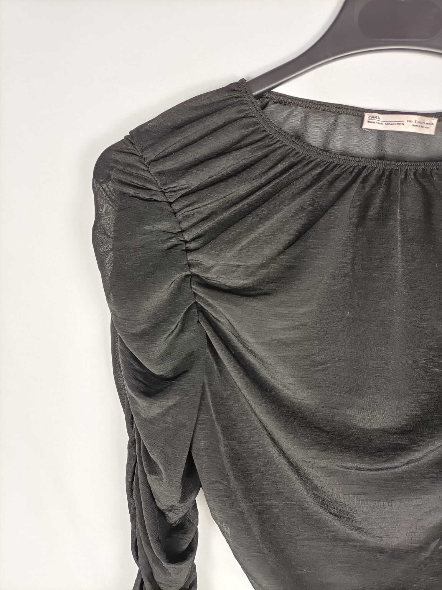 ZARA.Top negro semitransparente mangas fruncidas T.s