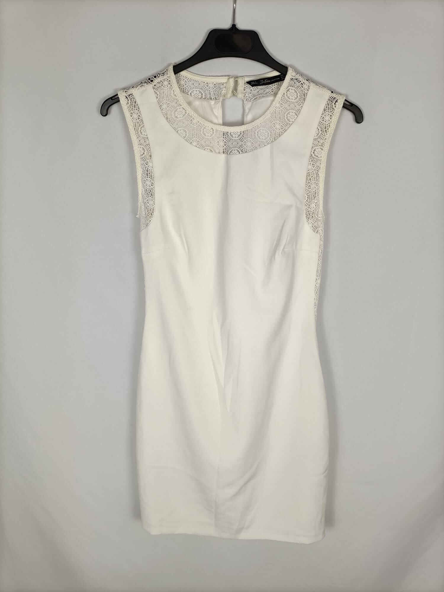 Zara.m. Vestido blanco roto ajustado y elástico con detalle de encaje. Largo 84 cm