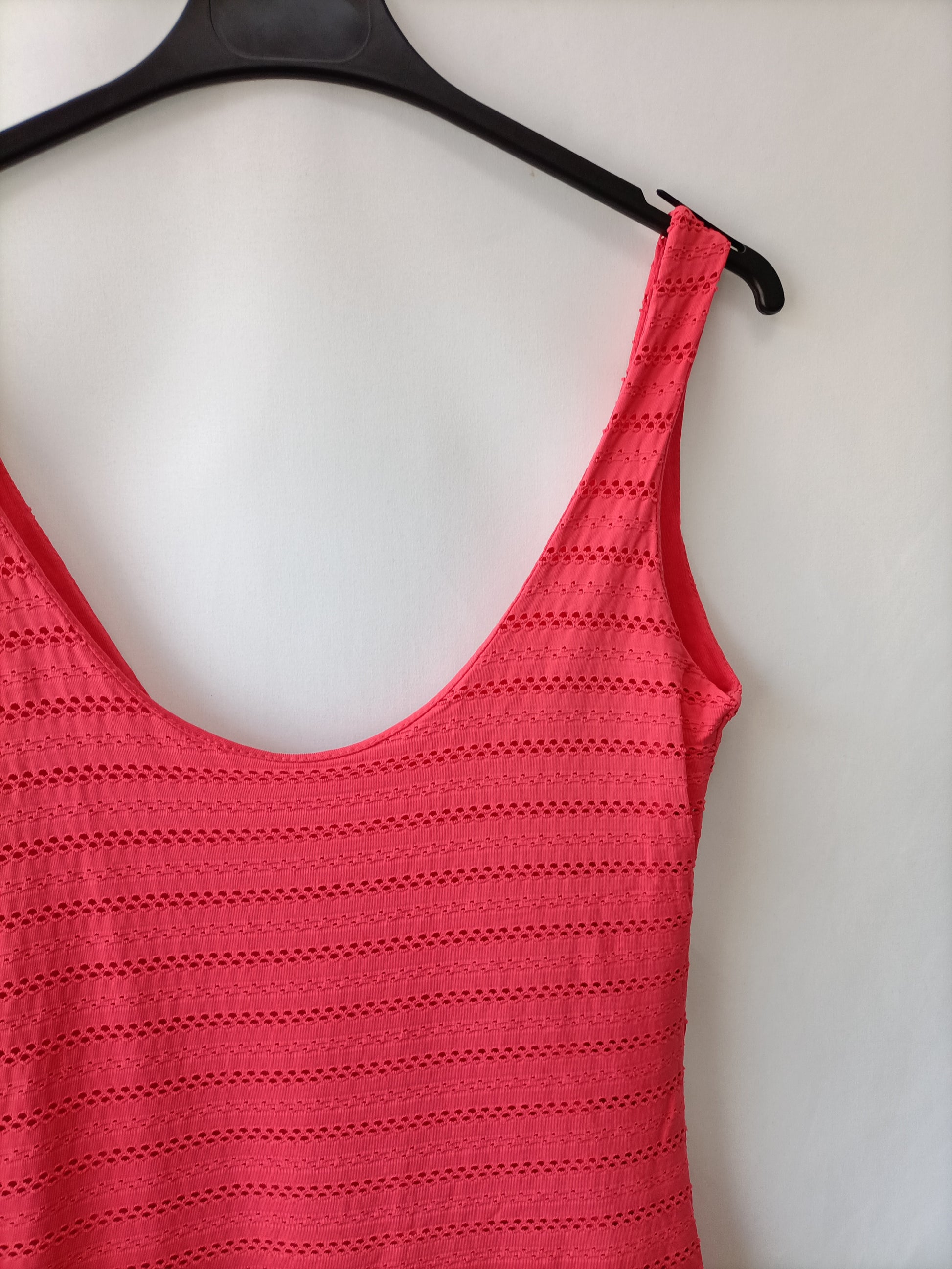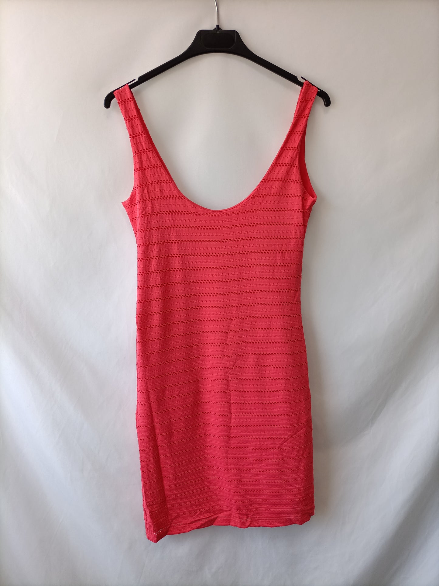 Vestido coral ajustado muy elástico. Tejido troquelado. De sisa a sisa y largo 41 cm y 85 cm