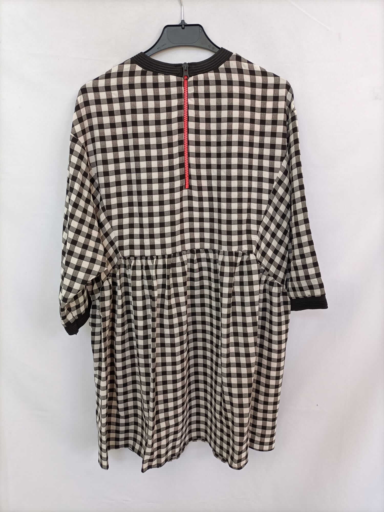 Zara. M. Vestido corto de cuadros vichi fluido con detalle de cremallera flúor en la espalda. Mangas estilo murciélago. Largo 84 cm