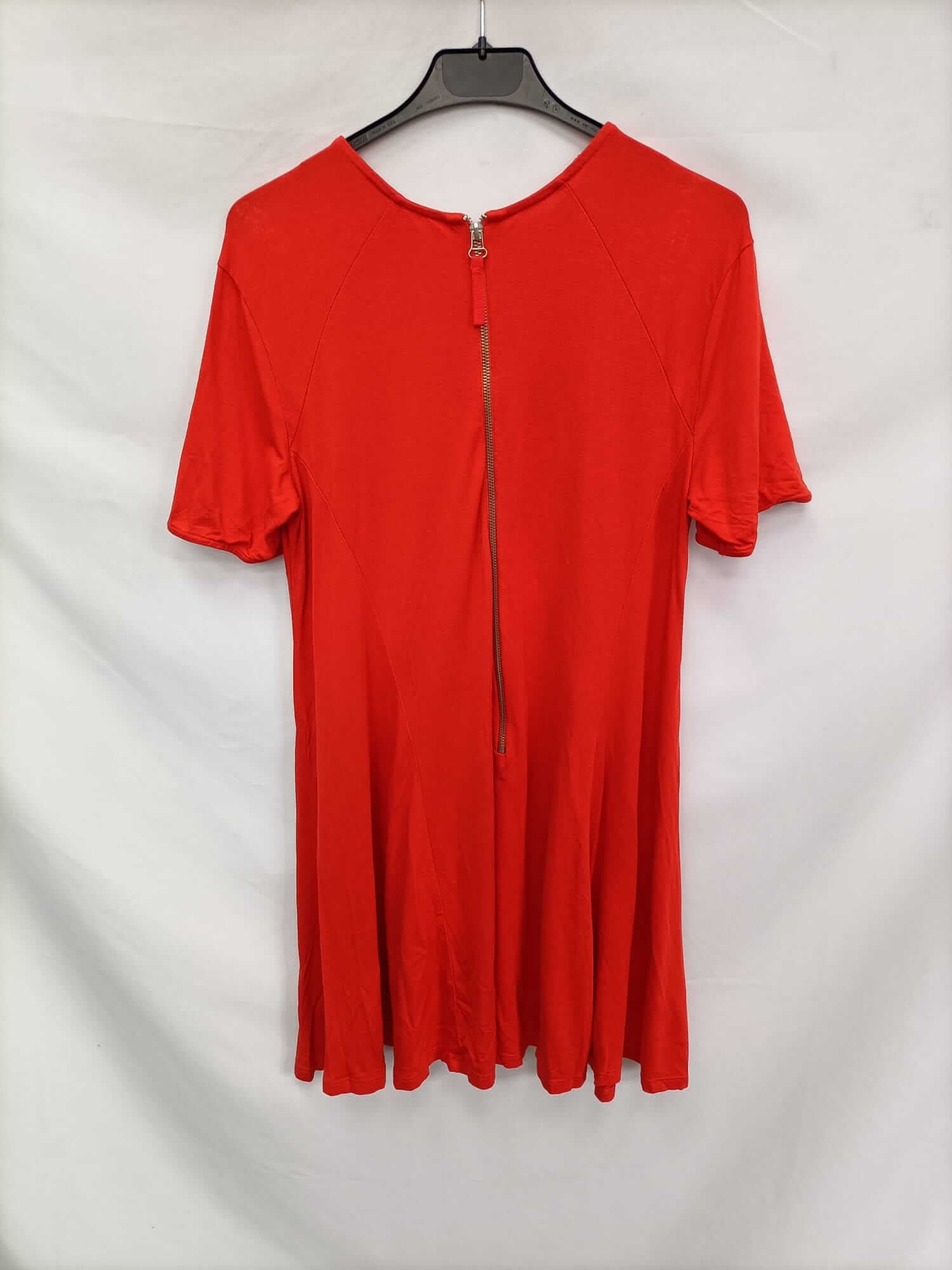 Zara. Vestido corto naranja oscuro con detalle de cremallera a la vista. Elástico. Largo 87 cm