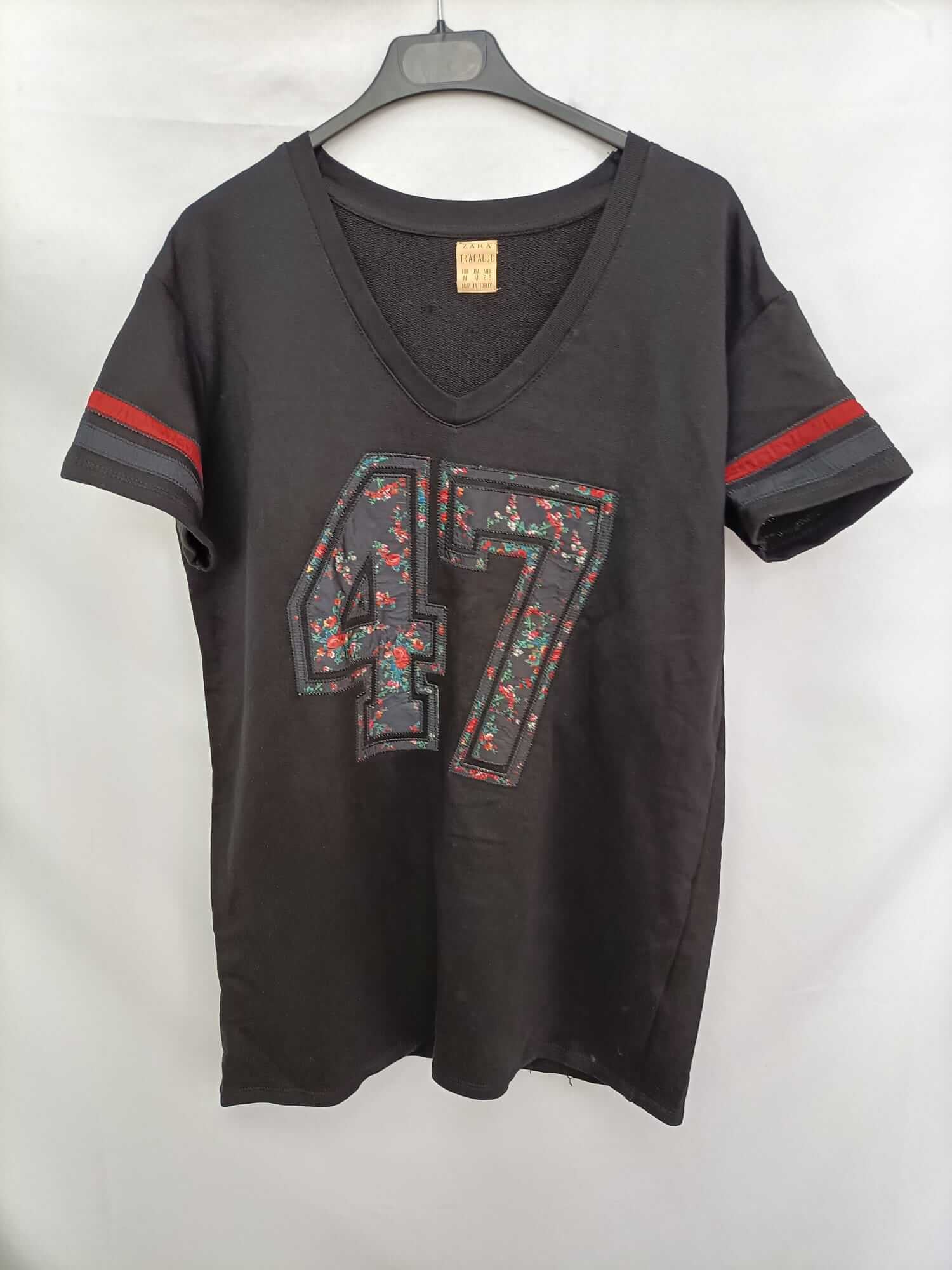 Zara. M. Vestido corto negro estilo sudadera con detalle de número en flores. Elástico. Largo 80 cm