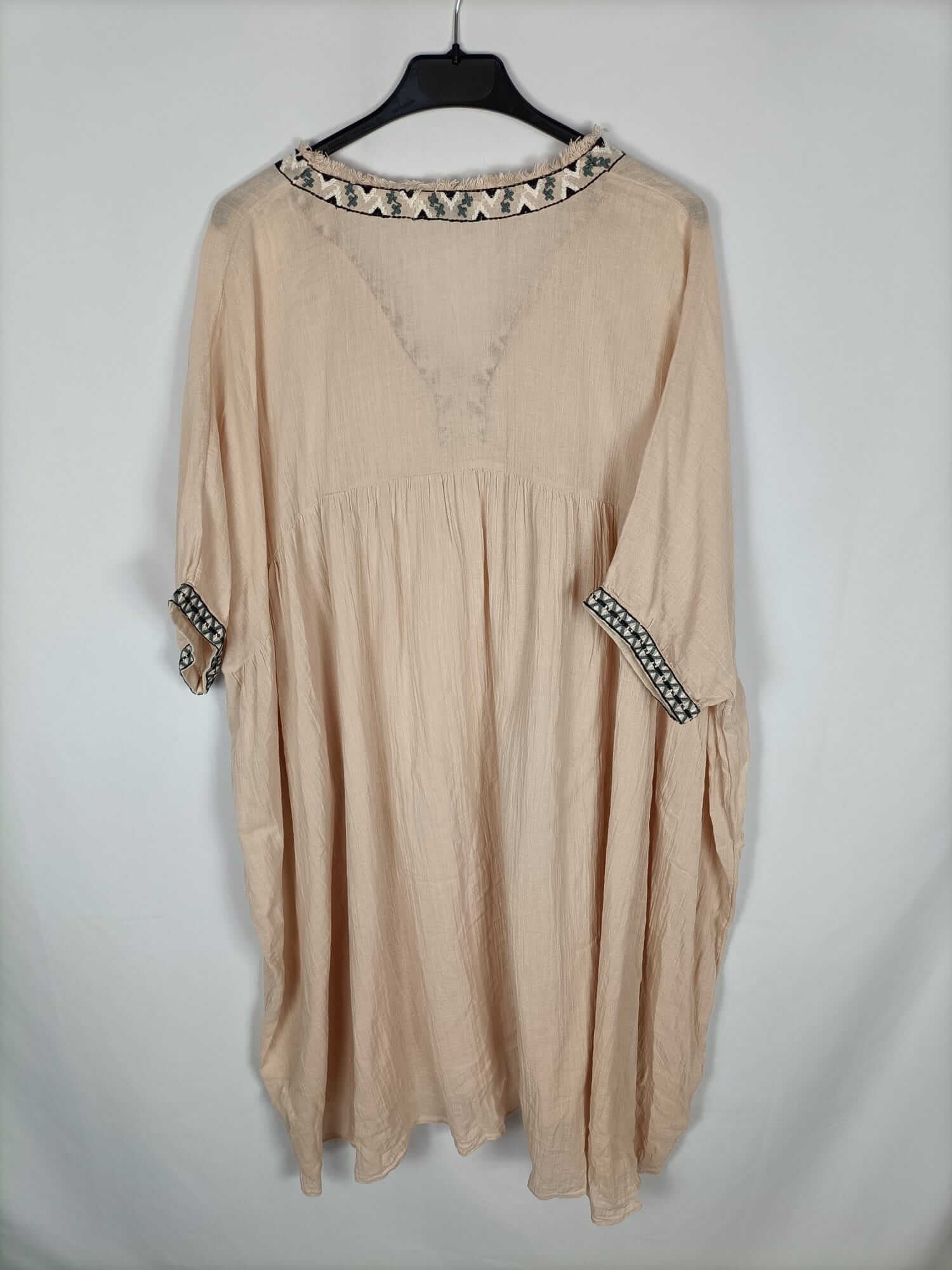 Zara. Xs/s. Vestido estilo kaftan rosa palo con detalles bordados. Largo 104 cm