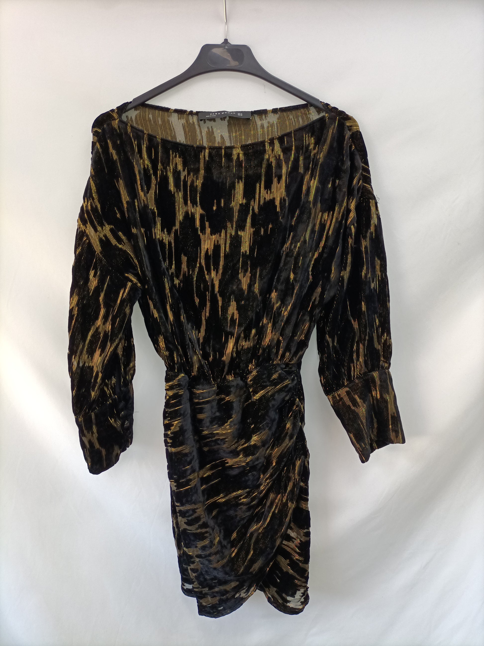 ZARA.Vestido terciopelo negro y dorado T.xs