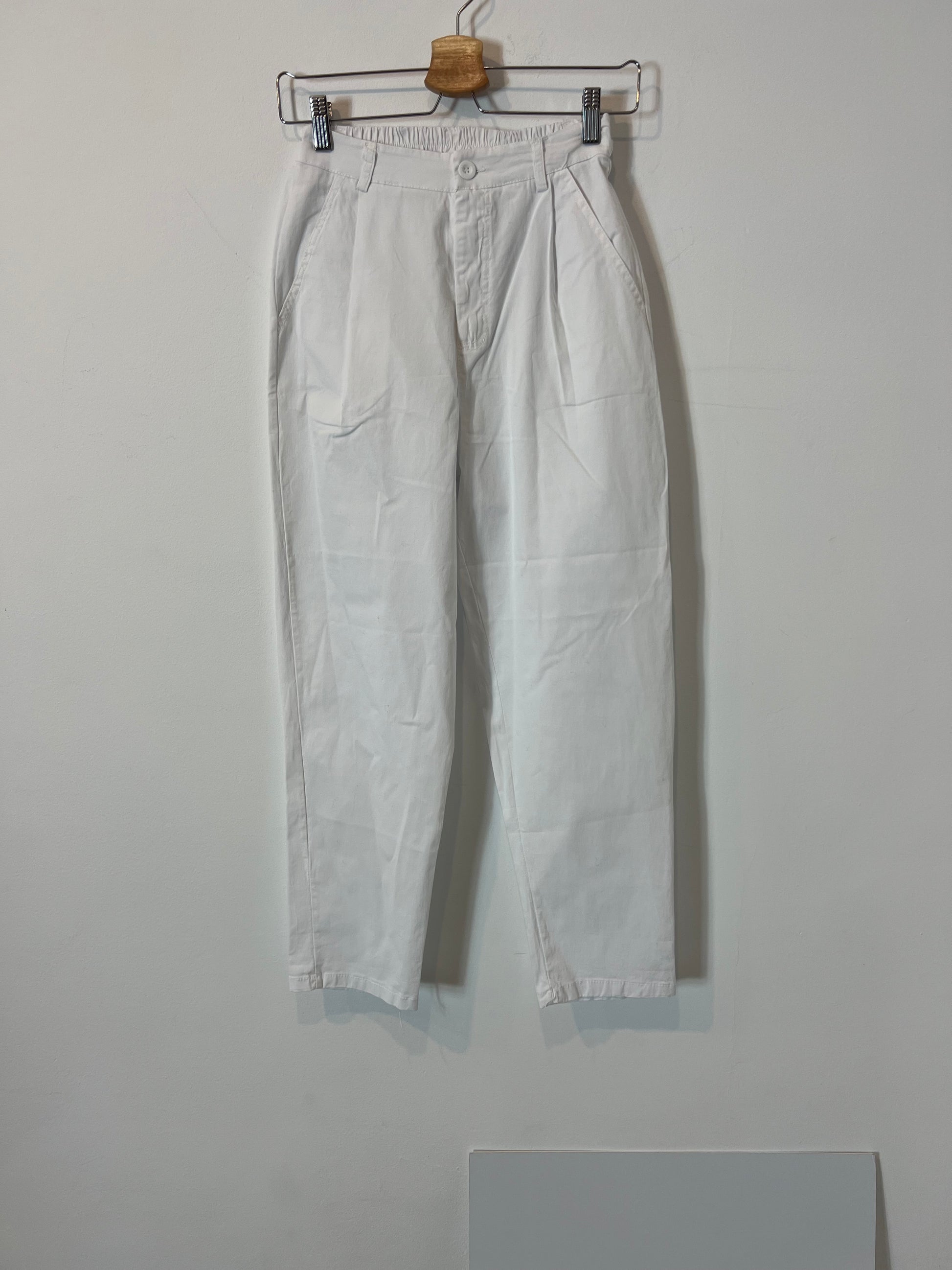 Pantalón blanco algodón pinzas. Cintura 31cm, largo 94cm