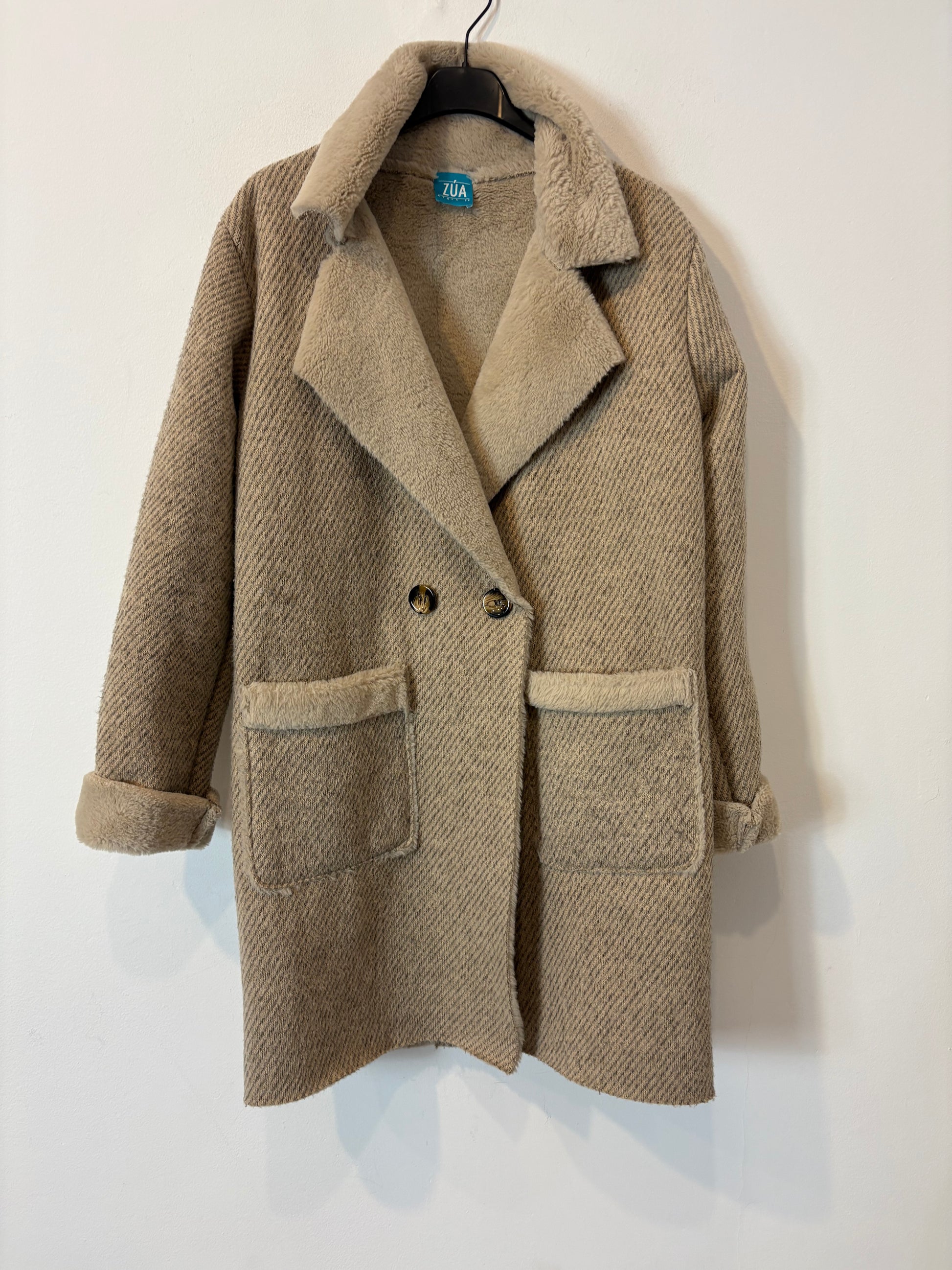 ZÚA. Abrigo beige textura con lana