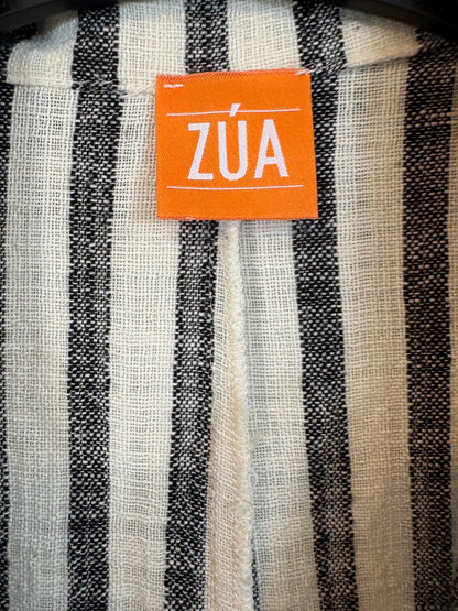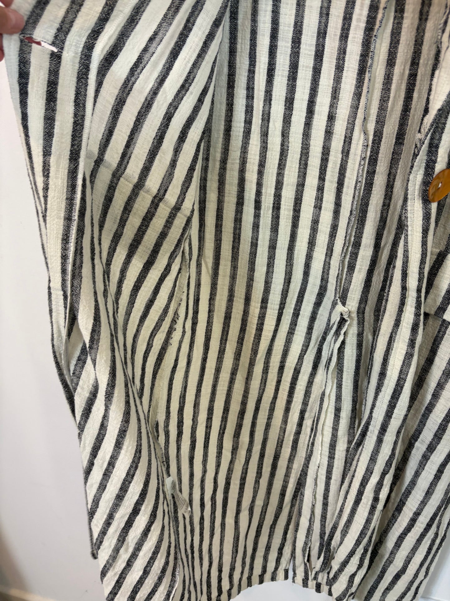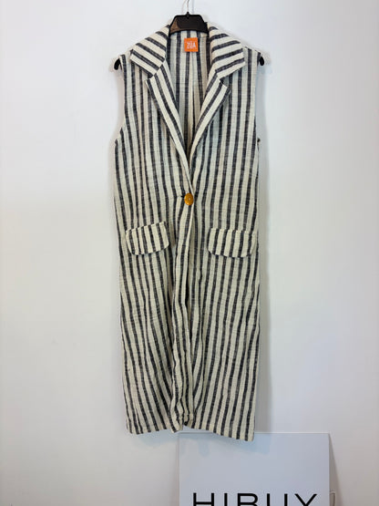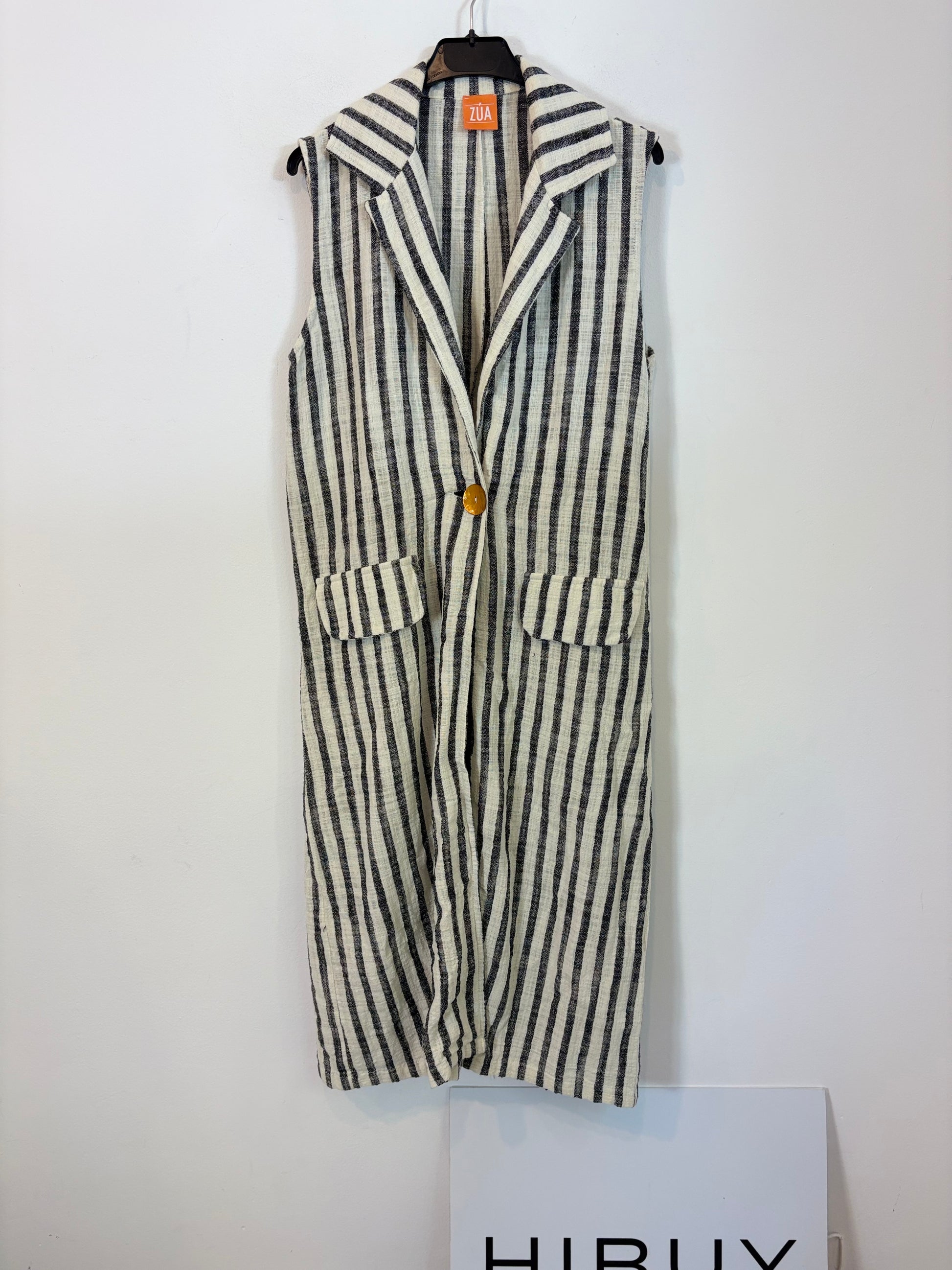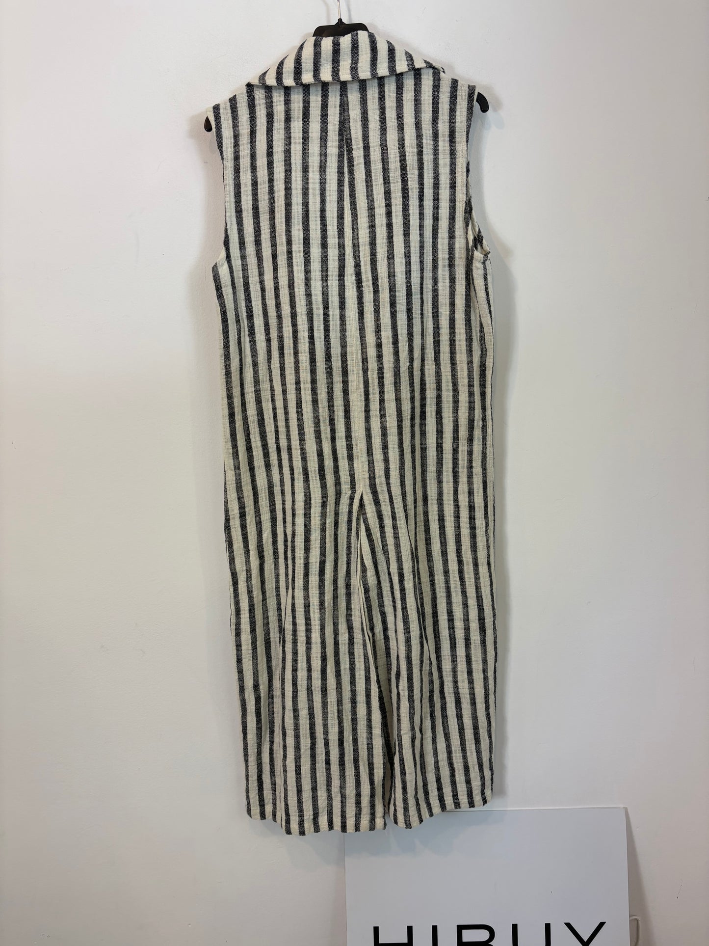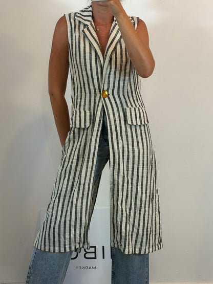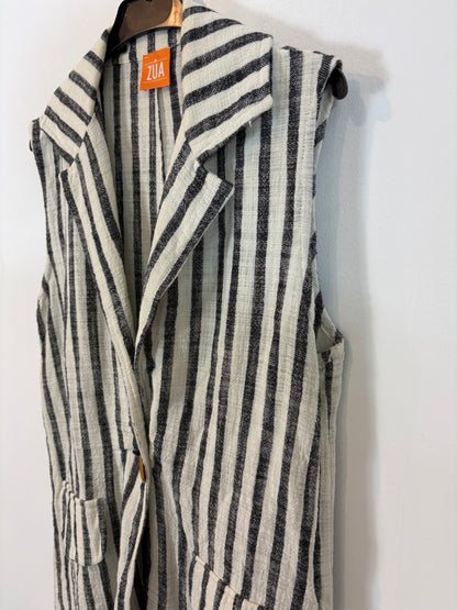 Espalda 50 cm, largo 118 cm. Chaleco rayas algodón botón nácar