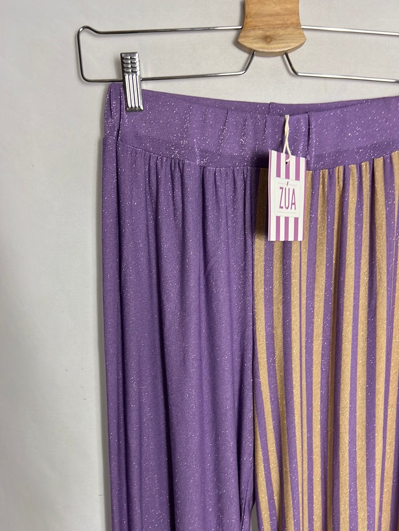 ZUA. Pantalón morado rayas fluido. TU (S)