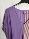 Top morado rayas fluido. Tejido semitransparente hilos brillos